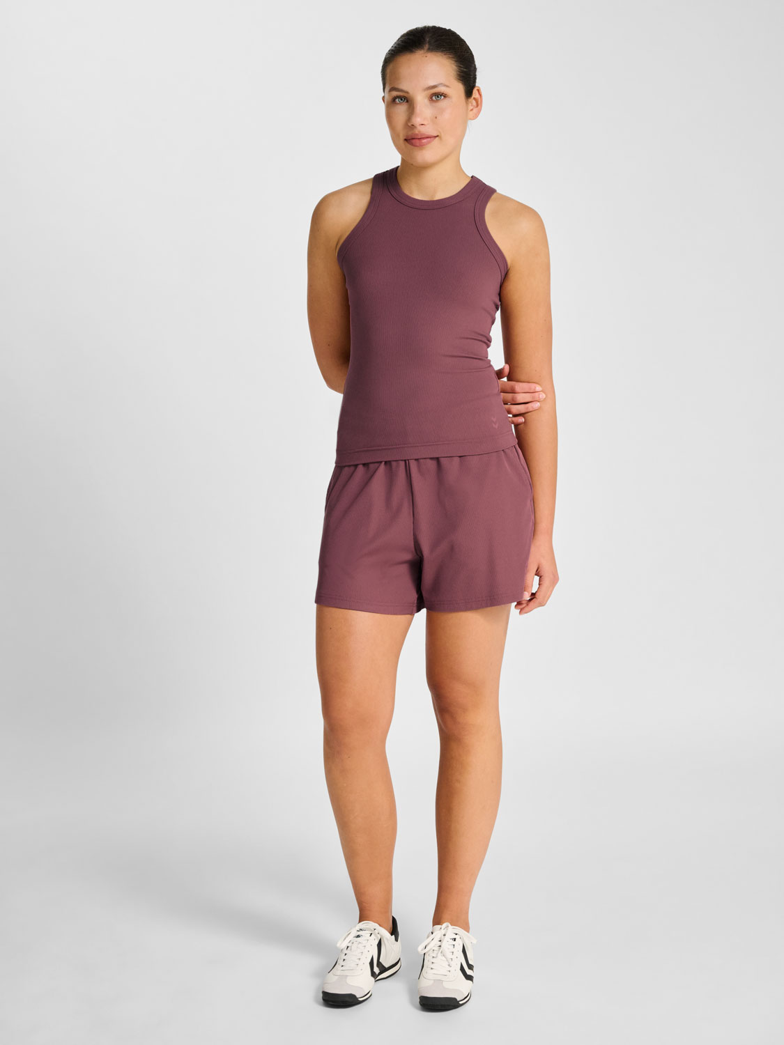 HMLPULSE RIB berankoviai moteriški marškinėliai pasiūti iš minkšto ir tampraus, briaunoto audinio, kad būtų patogūs ir prigludę prie kūno.
